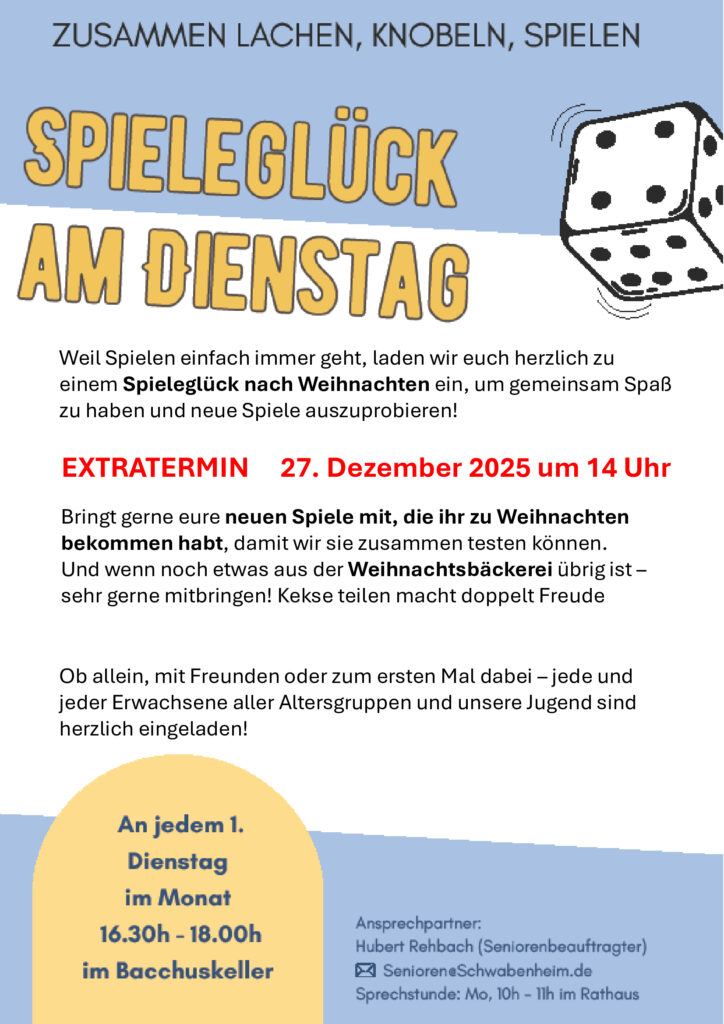 Extratermin SPIELEGLÜCK am 27.12.25 um 14 Uhr im Bacchuskeller