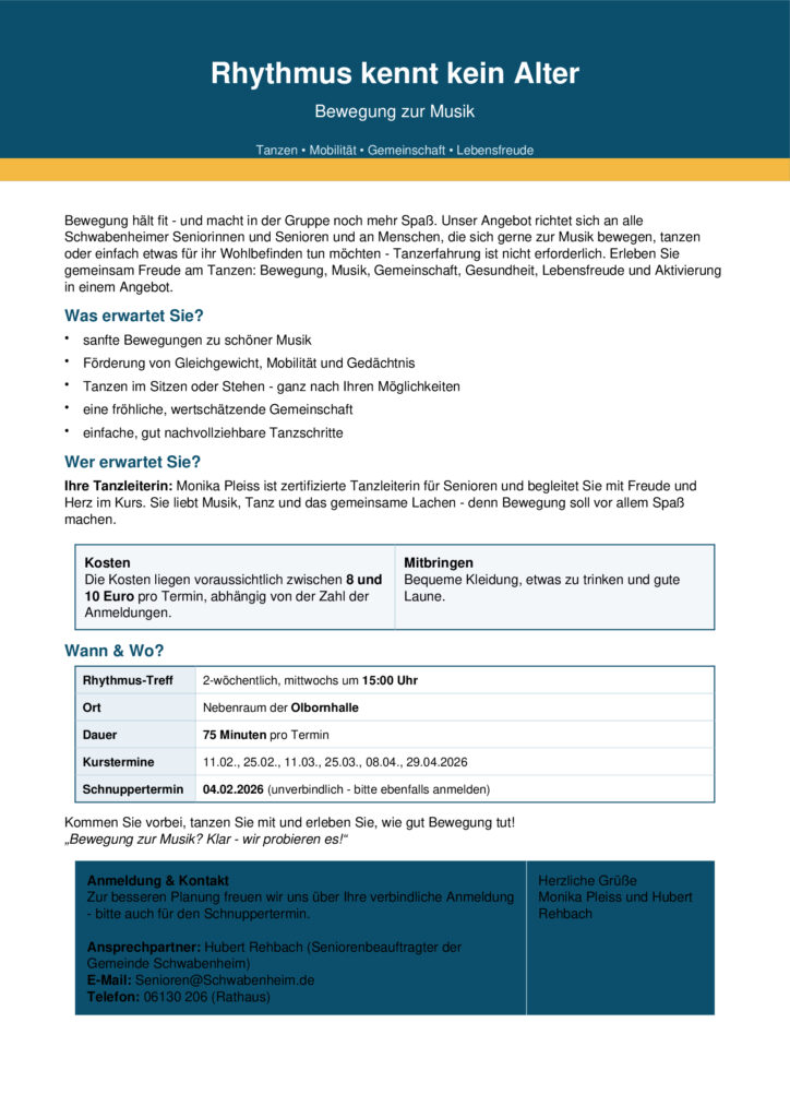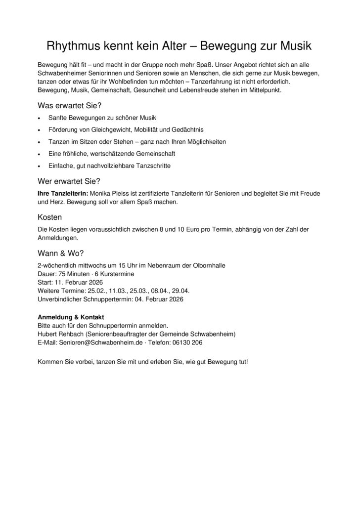 RHYTHMUS KENNT KEIN ALTER- Schnuppertermin Tanzkurz 4.2.2026